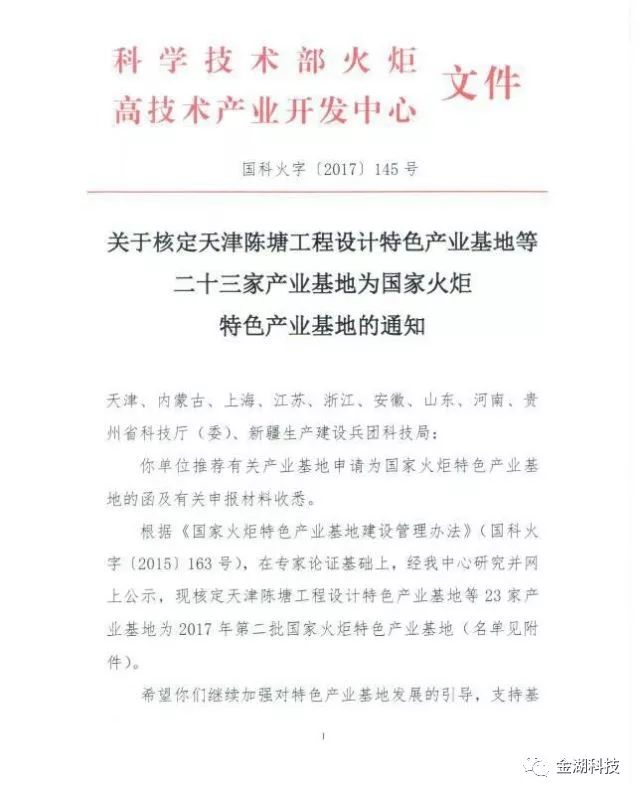 近日,国家科技部火炬中心发文,公布23家国家火炬特色产业基地名单,核定金湖县仪器仪表特色产业基地为国家火炬特色产业基地。这是我县继国家火炬金湖石油机械特色产业基地之后再次获此殊荣的科技载体,也是苏北首家拥有两张该“国字号”名片的县区。